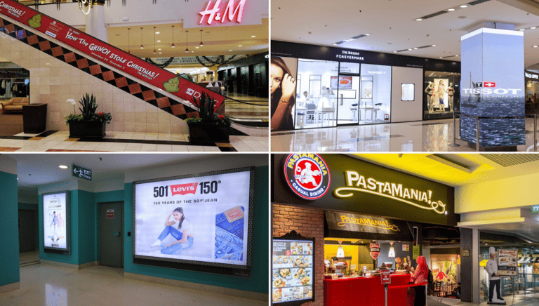 Complete indoor and outdoor advertising services: Banners, retail branding, mall displays, and high-impact visuals.